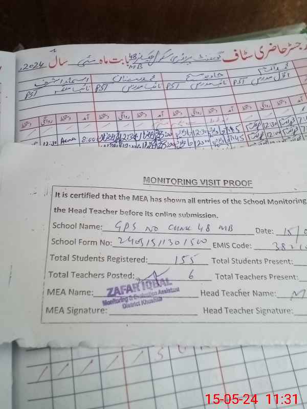 | EMIS Code: 38210259 | Name of School: GPS CHAK NO 48 MB | |||