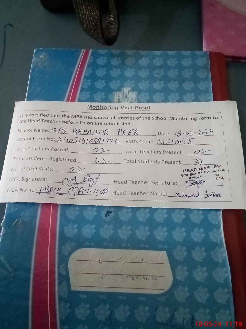 | EMIS Code: 31310145 | Name of School: GPS BAHADUR PEER | |||