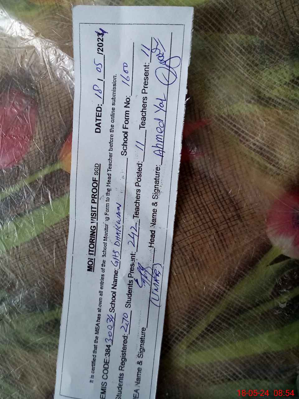 | Name: AH**** YA**** Designation: (School Headmaster's/Headmistress's) S S E MATH Phone/Cell Number: 03**** |