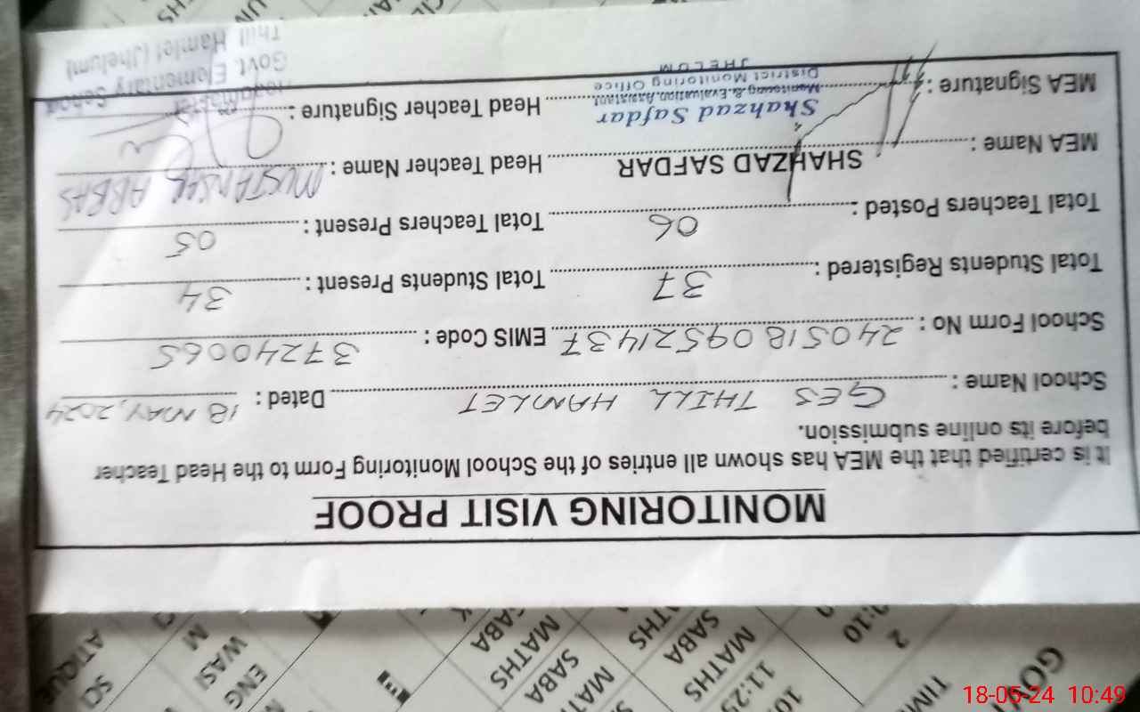 | Attendance Register | Head Teacher | MEA with School | Visit Proof |