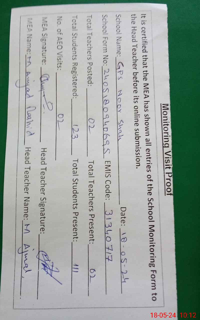| EMIS Code: 31340717 | Name of School: GPS NOOR SHAH | |||