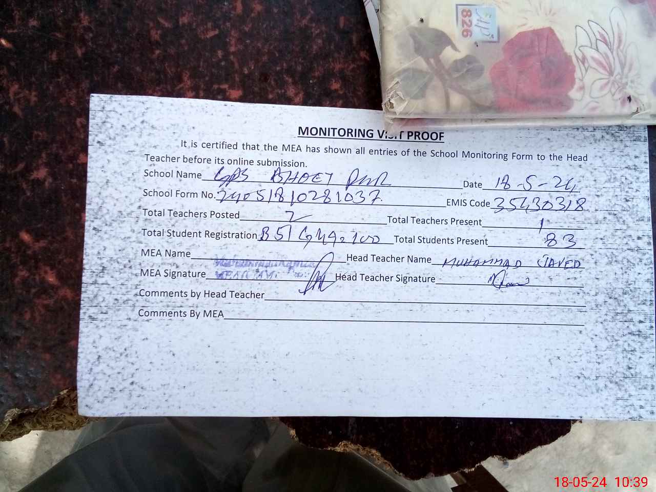 | EMIS Code: 35430318 | Name of School: GPS BHOEY PUR | |||