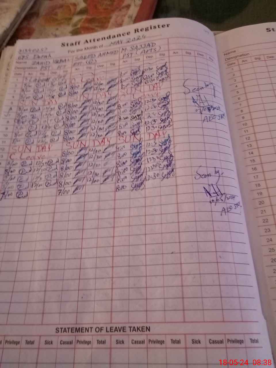 | CNIC | Full Name | Designation | R/C | Absence During Last Calender Month |