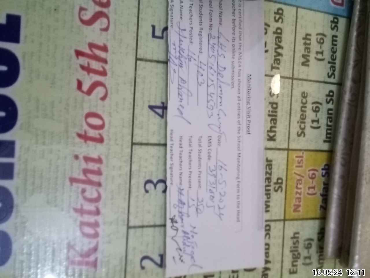 | Attendance Register | Head Teacher | MEA with School | Visit Proof |