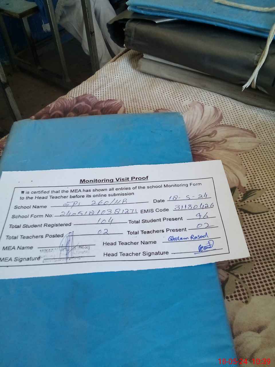 | EMIS Code: 31130426 | Name of School: GPS CHAK NO.260/HR WEST | |||