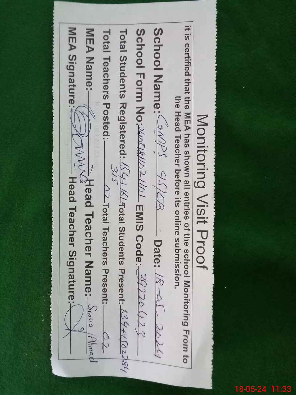 | EMIS Code: 39220423 | Name of School: GMPS 95/EB | |||