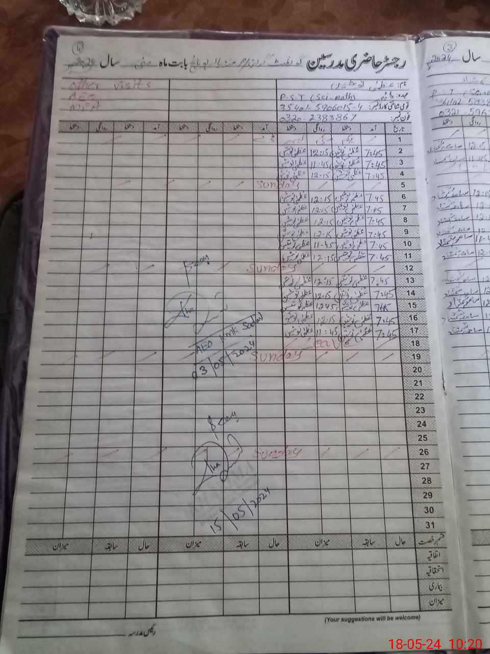 | Name: Sa**** Sh**** Designation: (School Headmaster's/Headmistress's) PST/PTC/JV Phone/Cell Number: 03**** |