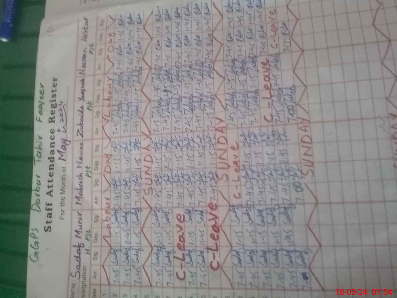 | CNIC | Full Name | Designation | R/C | Absence During Last Calender Month |