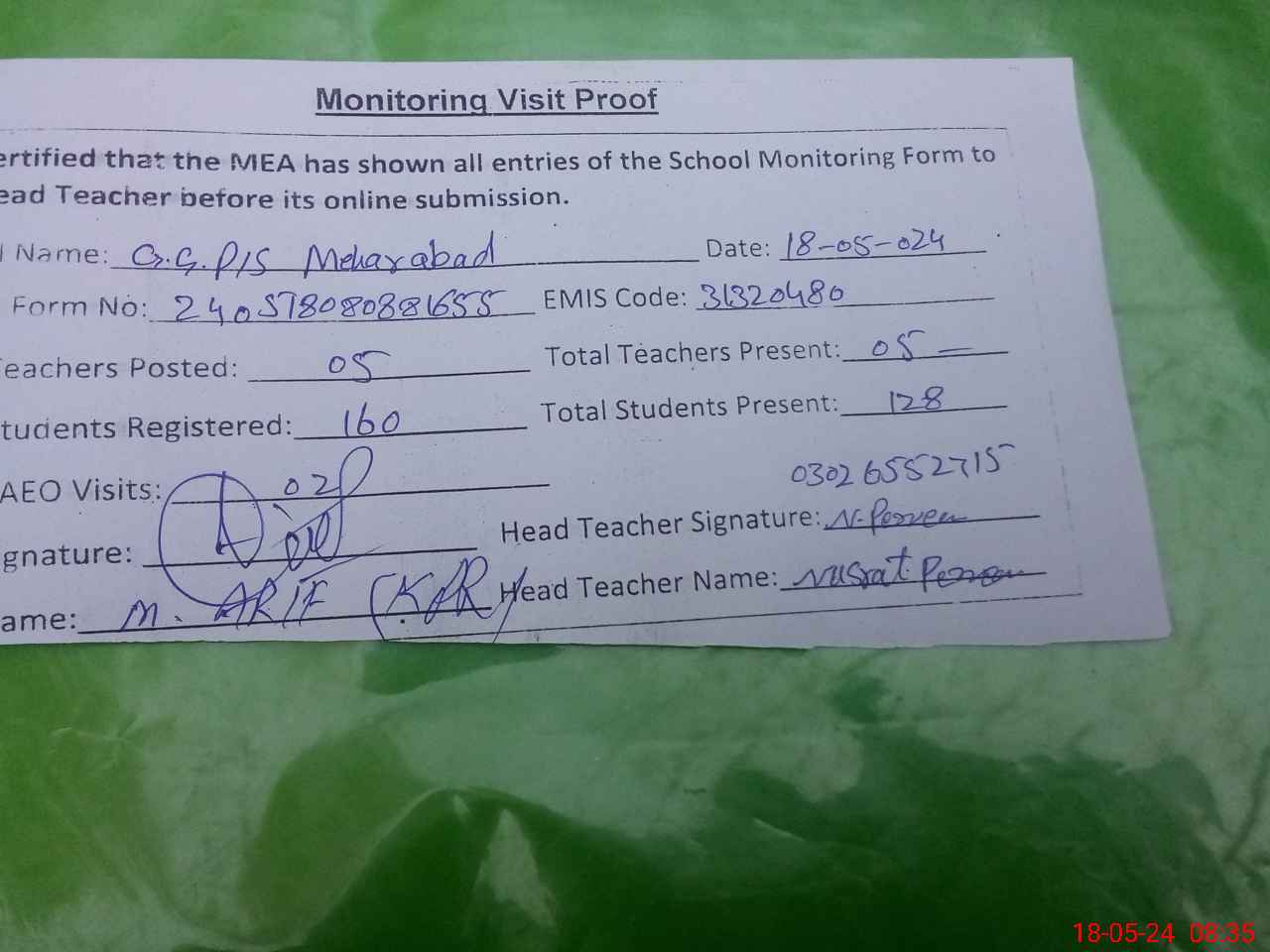 | EMIS Code: 31320480 | Name of School: GGPS MEHAR ABAD KACHI MANDI | |||