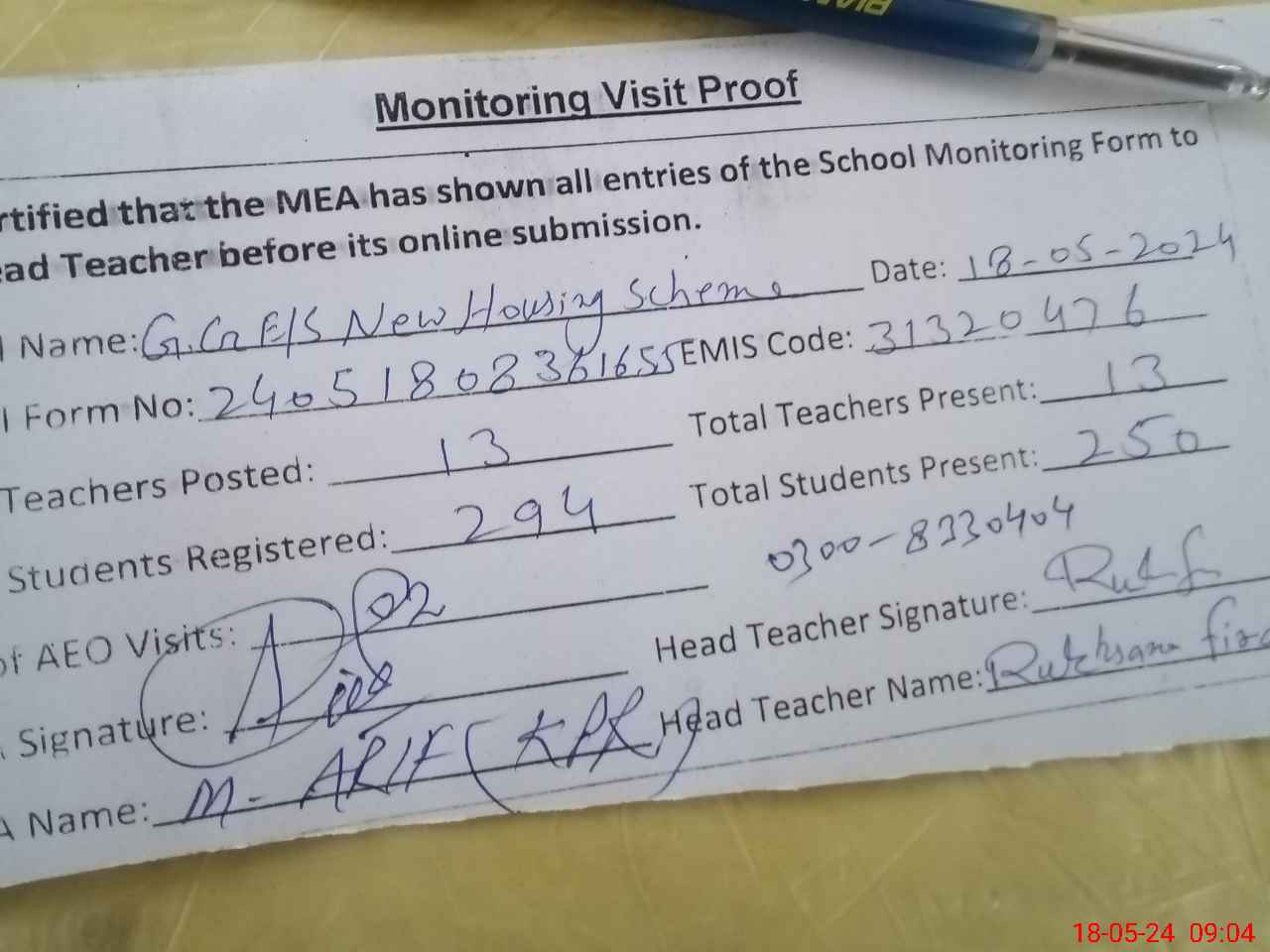 | Name: RU**** FI**** Designation: (School Headmaster's/Headmistress's) S.S.T.(Gen) Phone/Cell Number: 03**** |
