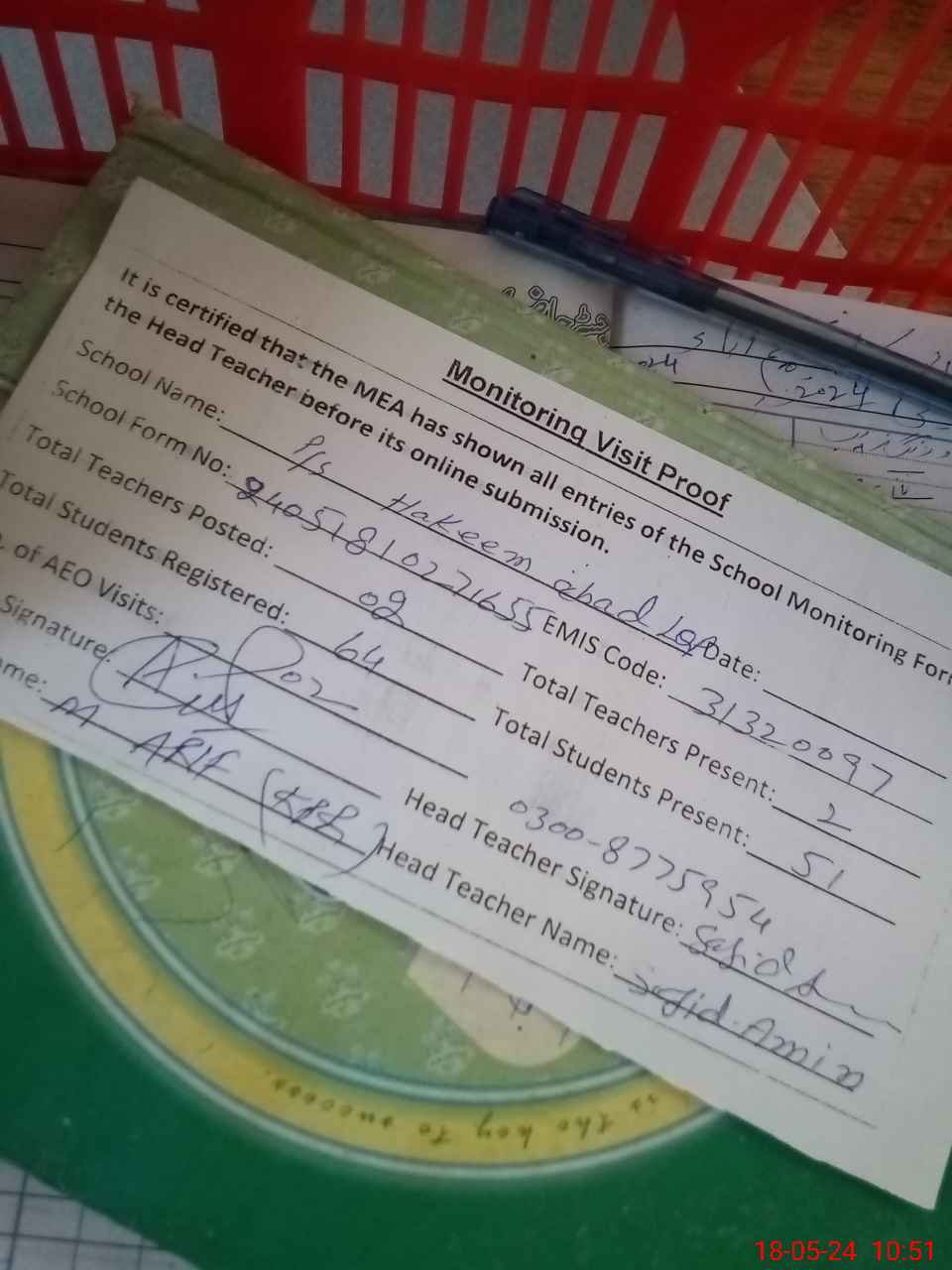 | EMIS Code: 31320097 | Name of School: GPS HAKEEM ABAD | |||