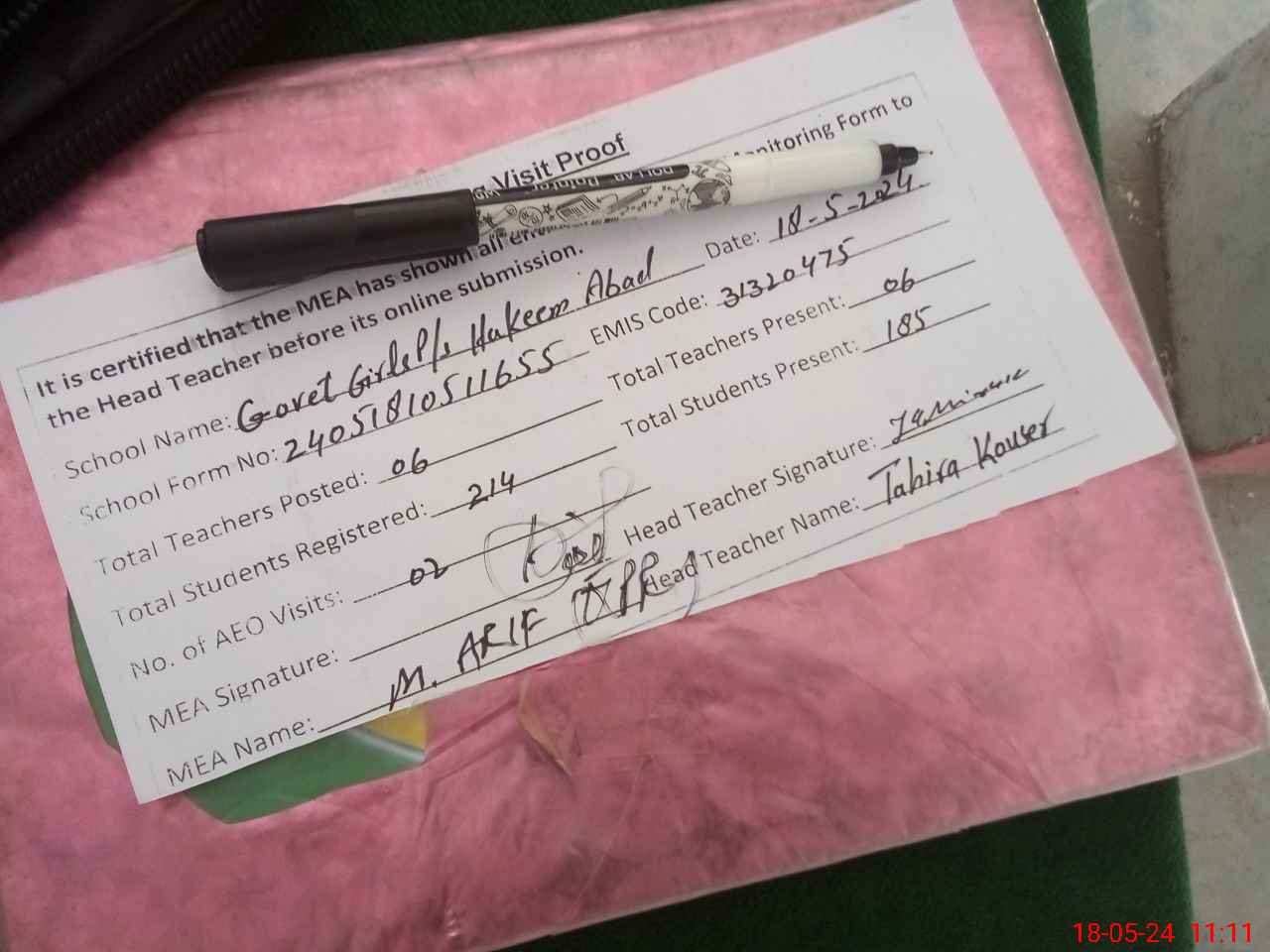 | Attendance Register | Head Teacher | MEA with School | Visit Proof |