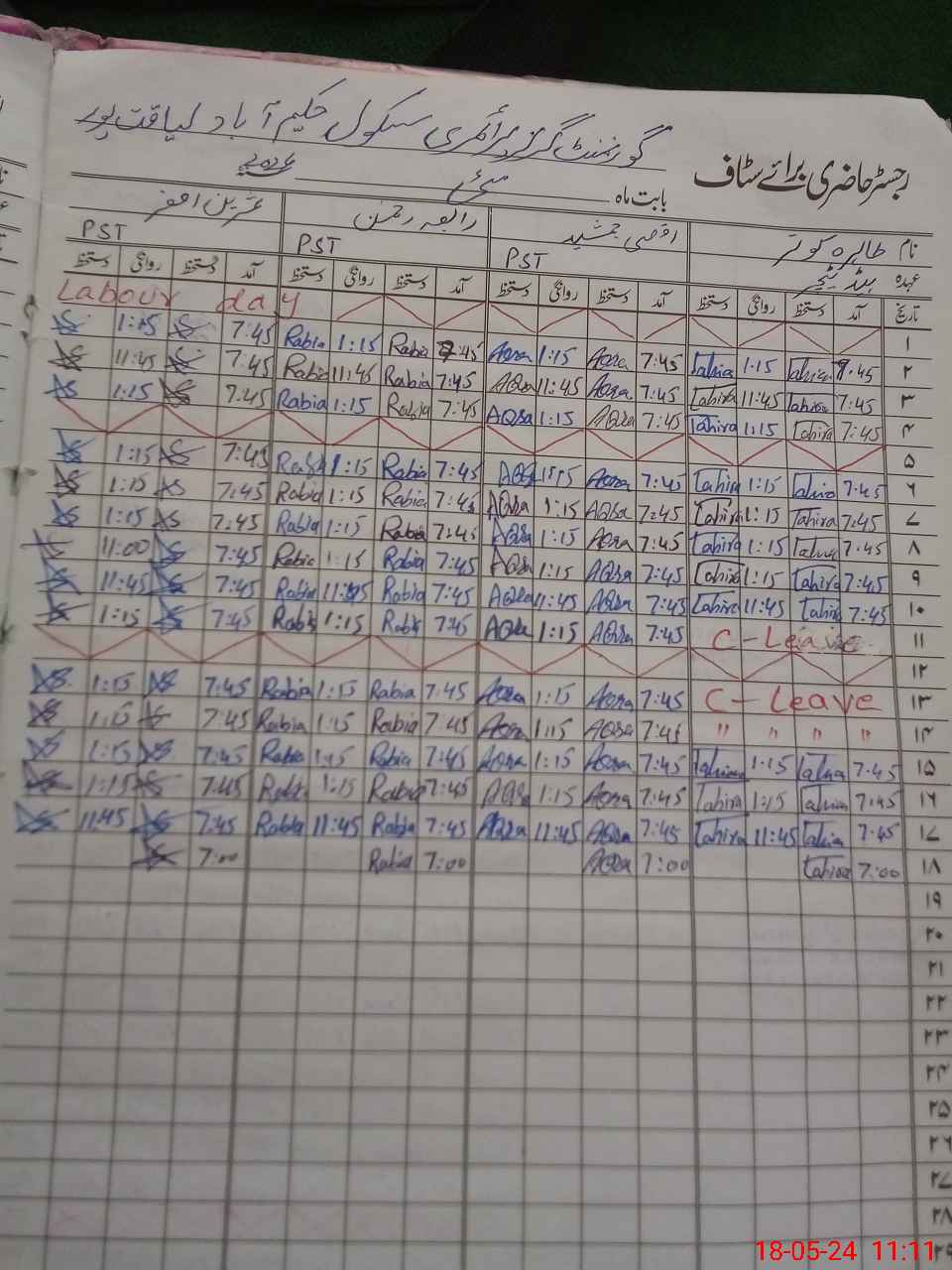 | Leave | Duty | Absent | Maternity | Medical | Ex- Pak |