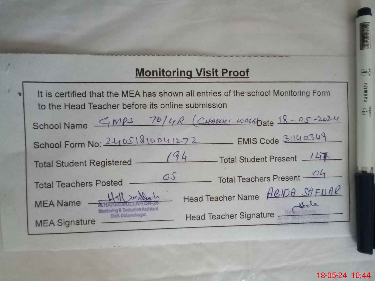| EMIS Code: 31140349 | Name of School: GMPS CHAK NO 70/4-R CHAKKI WALA | |||