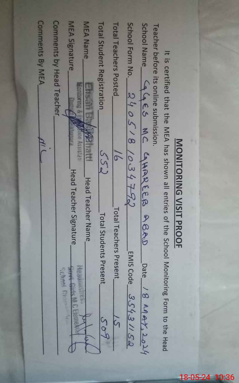 | EMIS Code: 35431152 | Name of School: GGES MC GHAREEB ABAD | |||