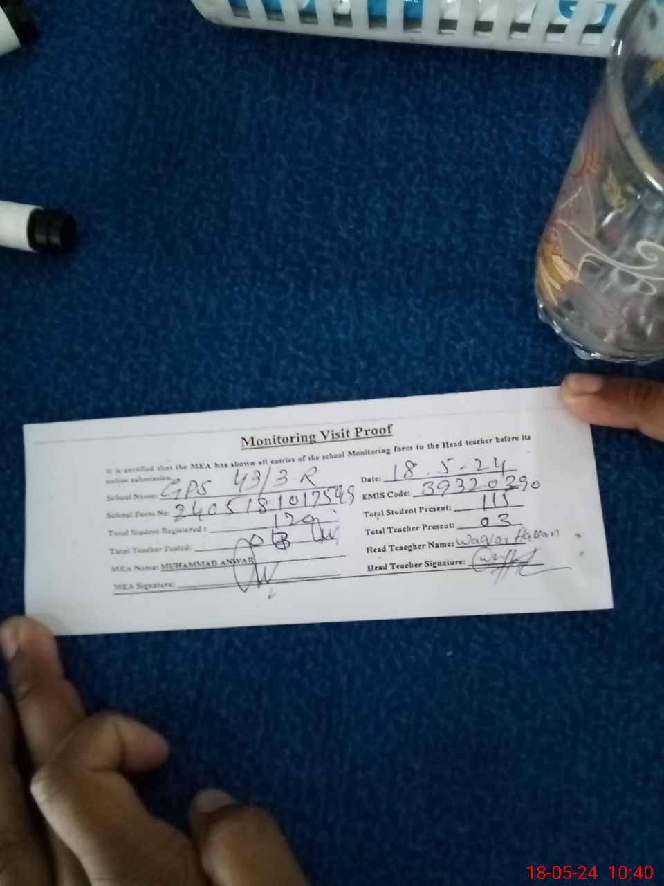| Name: Wa**** Hu**** Designation: (School Headmaster's/Headmistress's) ESE Phone/Cell Number: 03**** |