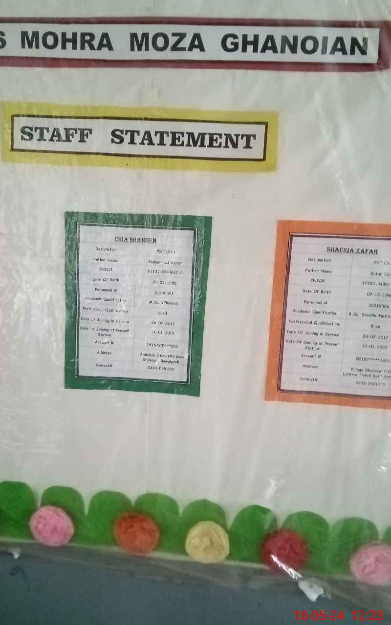 | EMIS Code: 37350295 | Name of School: GGPS MOHRA MOZA GHANOIAN | |||