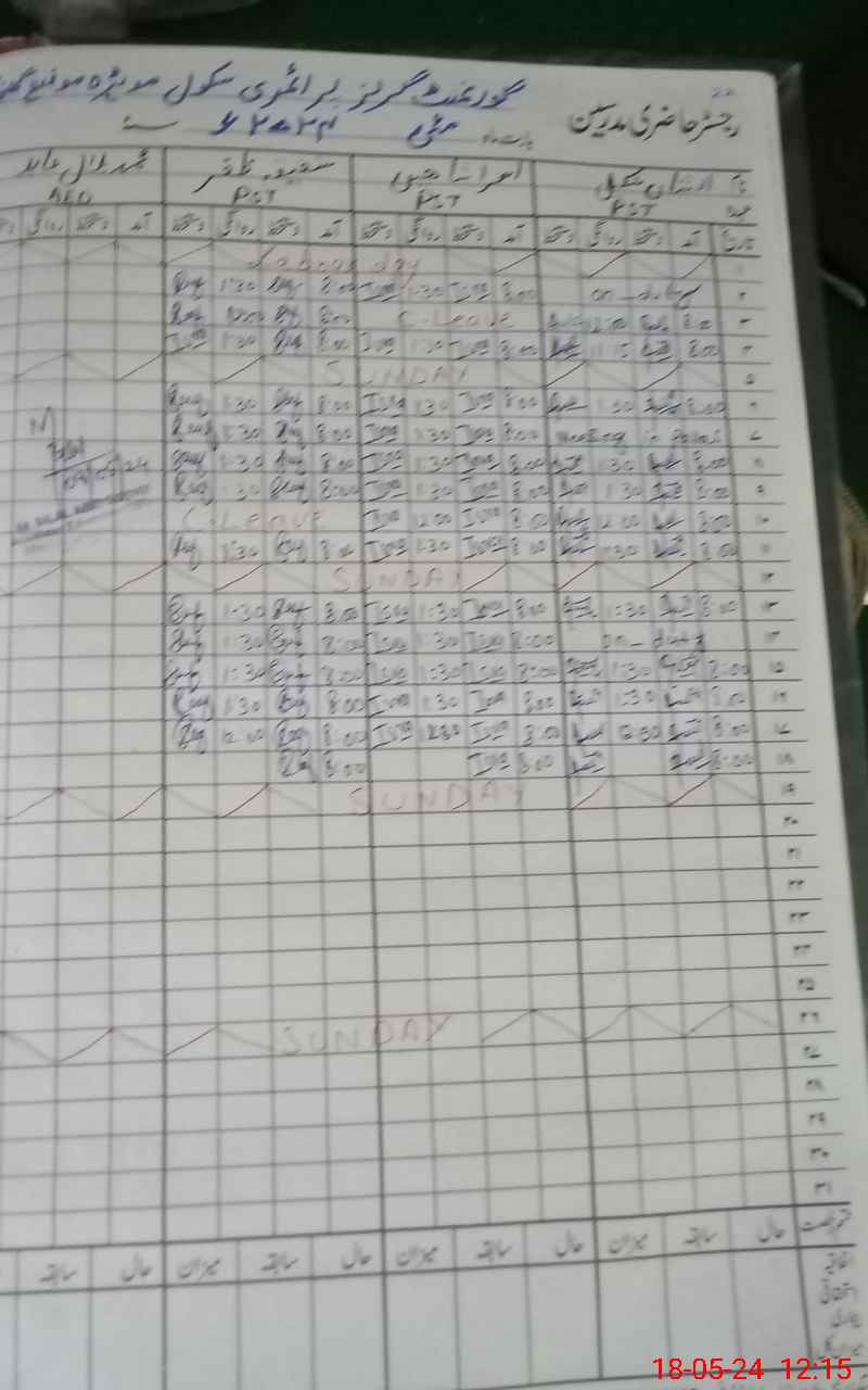| CNIC | Full Name | Designation | R/C | Absence During Last Calender Month |