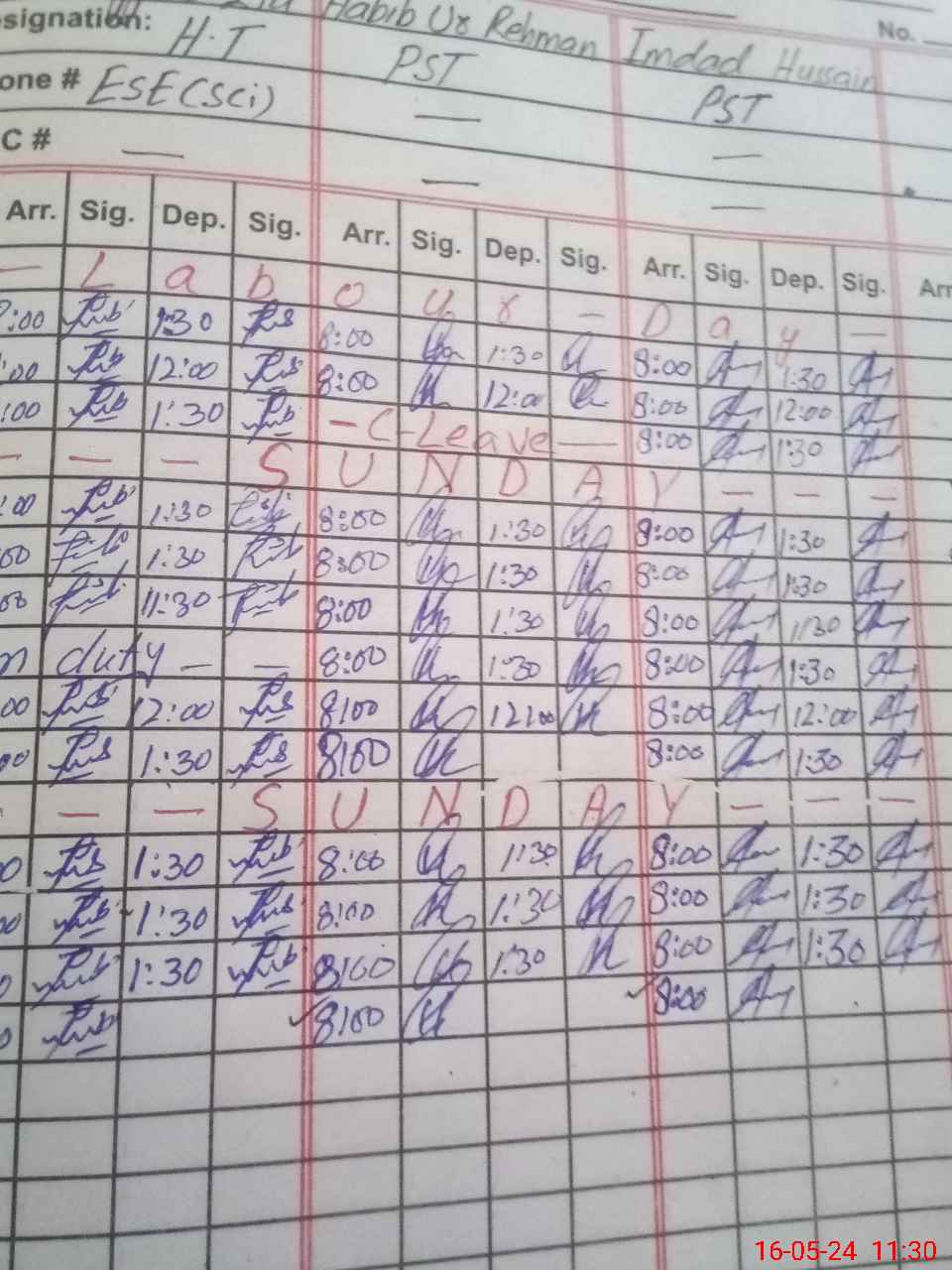 | CNIC | Full Name | Designation | R/C | Absence During Last Calender Month |