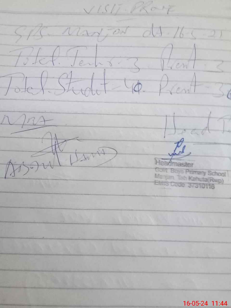 | Attendance Register | Head Teacher | MEA with School | Visit Proof |