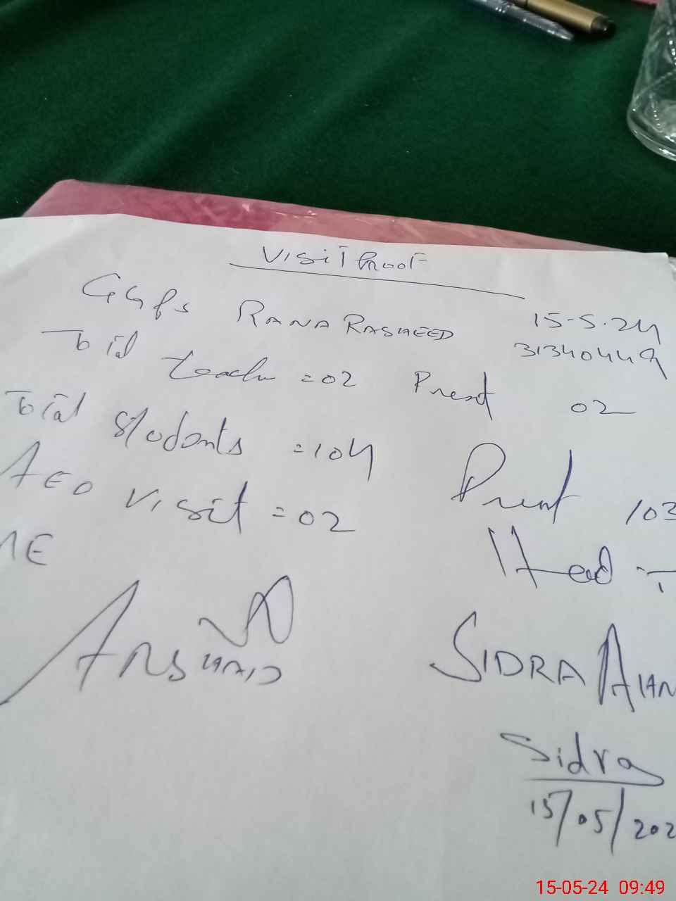 | Attendance Register | Head Teacher | MEA with School | Visit Proof |