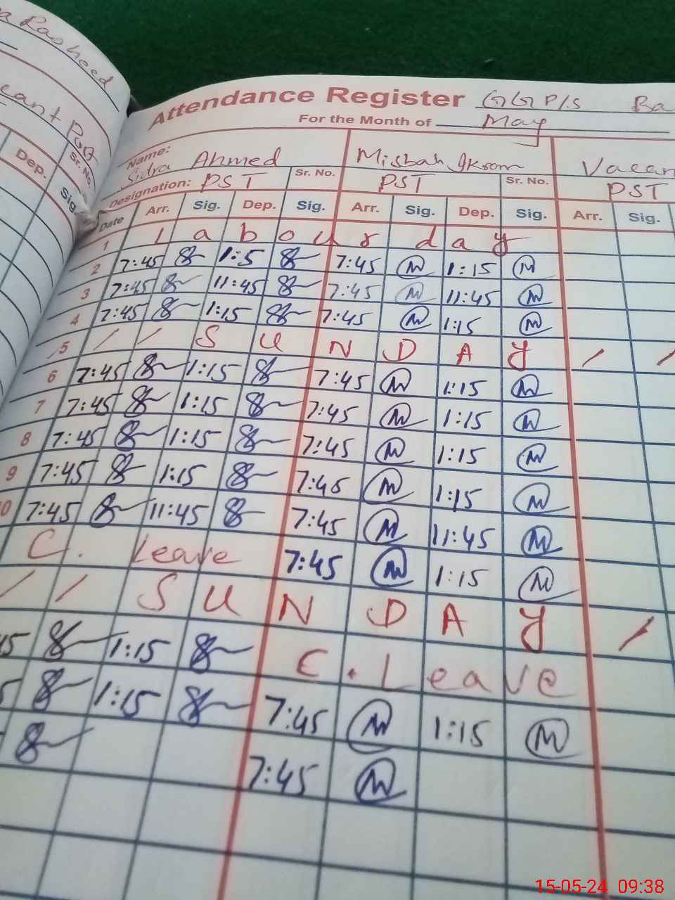 | CNIC | Full Name | Designation | R/C | Absence During Last Calender Month |