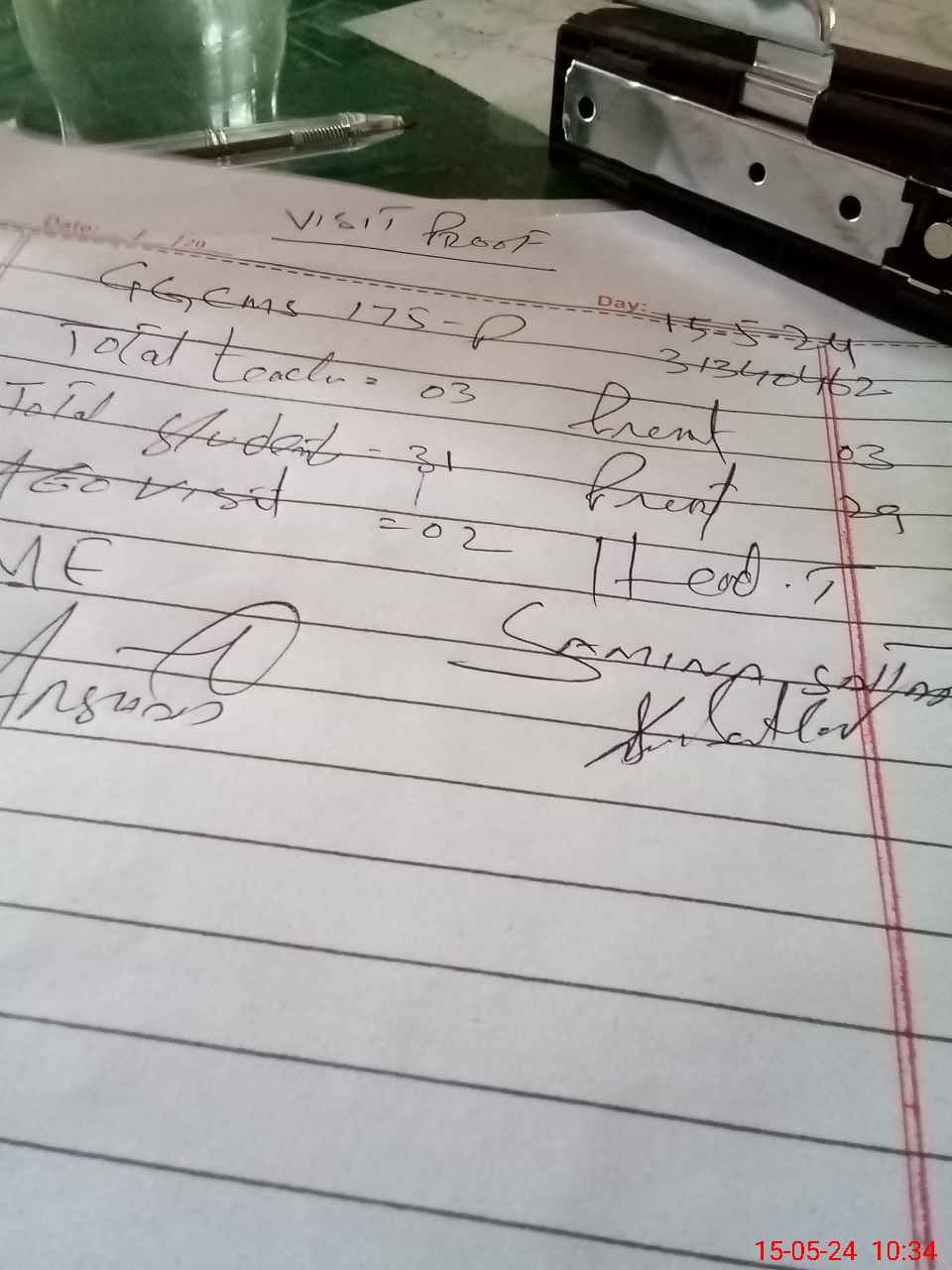 | Attendance Register | Head Teacher | MEA with School | Visit Proof |