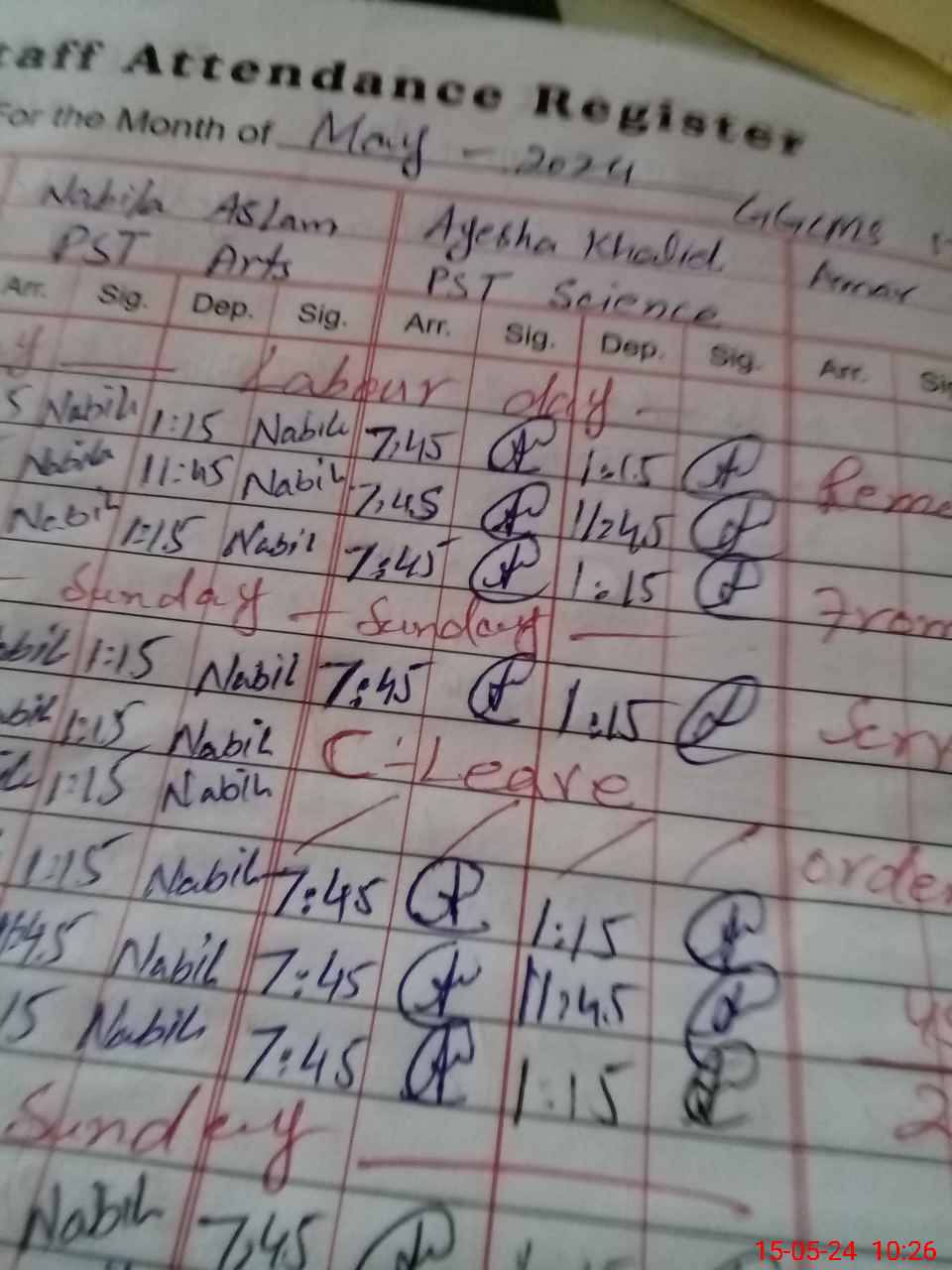 | Leave | Duty | Absent | Maternity | Medical | Ex- Pak |