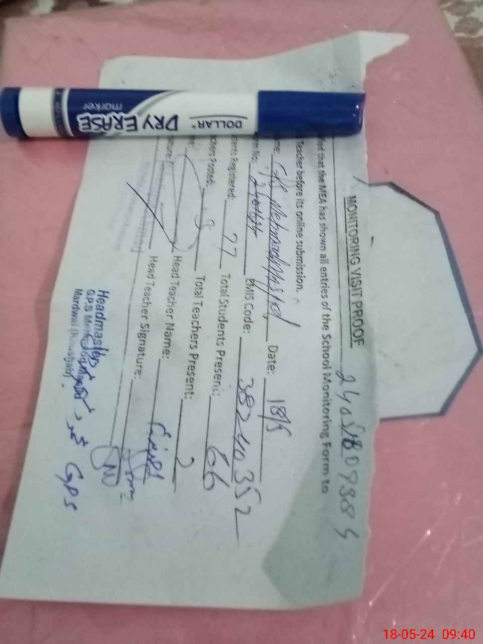 | EMIS Code: 38240352 | Name of School: GPS MEHMOOD MASJID MARDWAL | |||