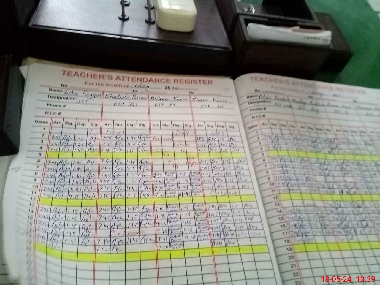 | CNIC | Full Name | Designation | R/C | Absence During Last Calender Month |