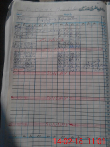 | CNIC | Full Name | Designation | R/C | Absence During Last Calender Month |