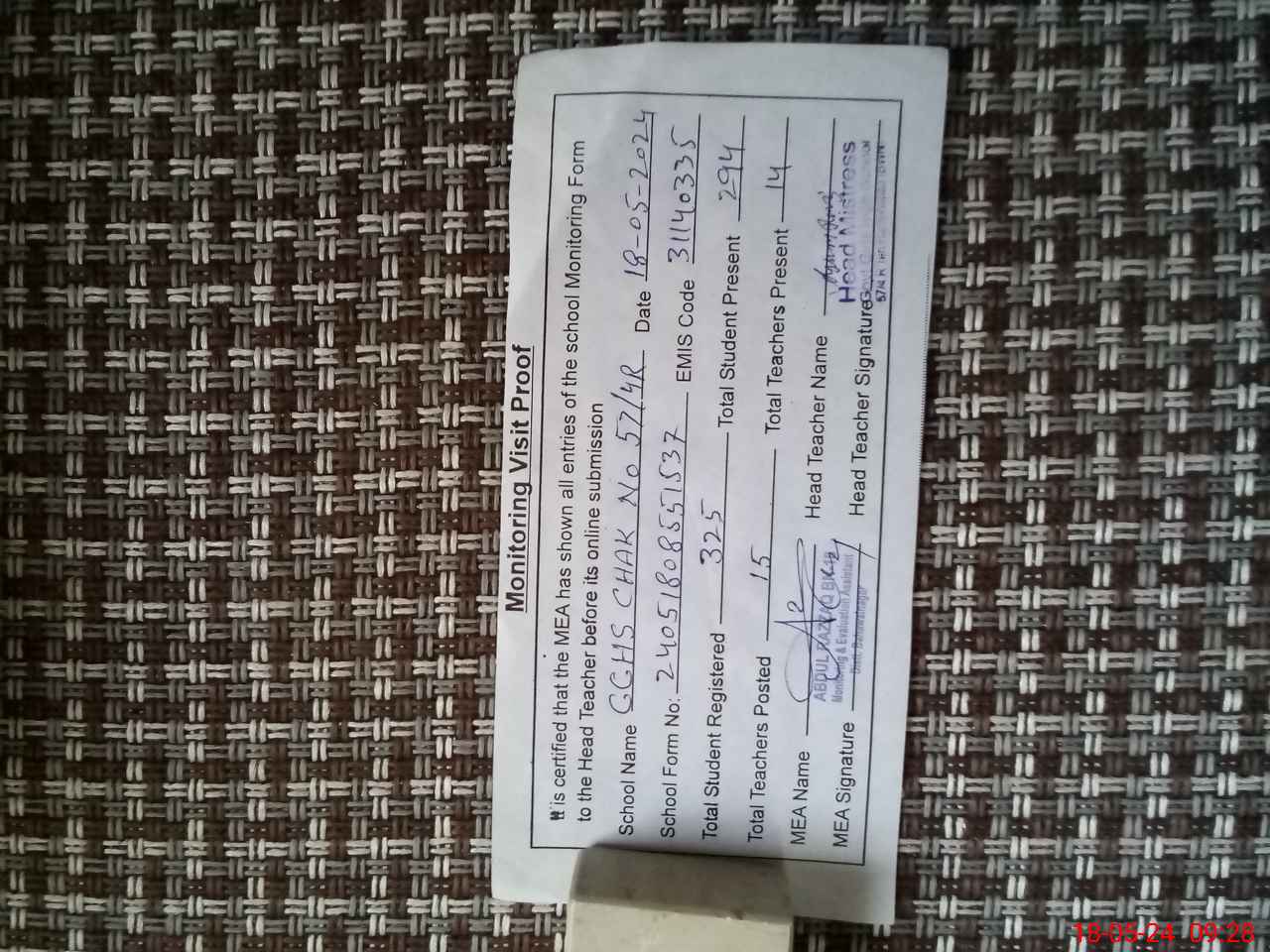 | Certified that this School was Inspected by the Undersigned MEA/DMO Today and the Information Stated Above is as Per Record. | |||||