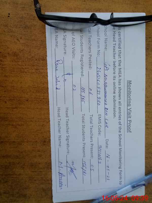 | Certified that this School was Inspected by the Undersigned MEA/DMO Today and the Information Stated Above is as Per Record. | |||||