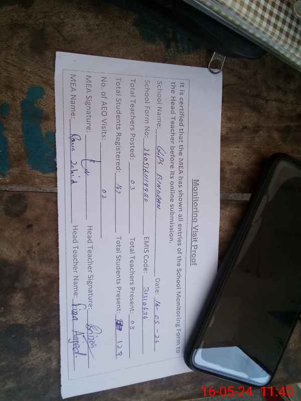 | Attendance Register | Head Teacher | MEA with School | Visit Proof |