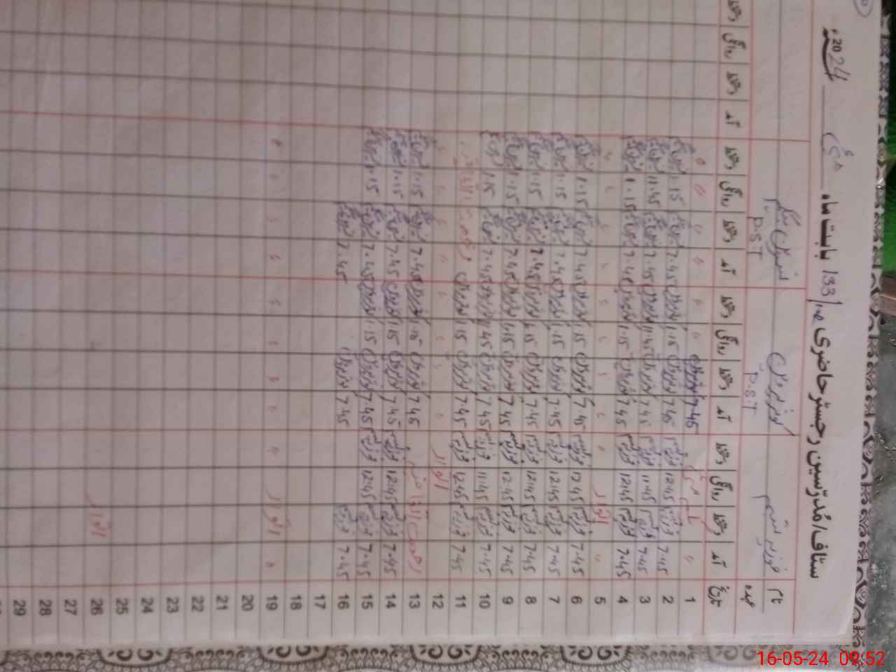 | CNIC | Full Name | Designation | R/C | Absence During Last Calender Month |