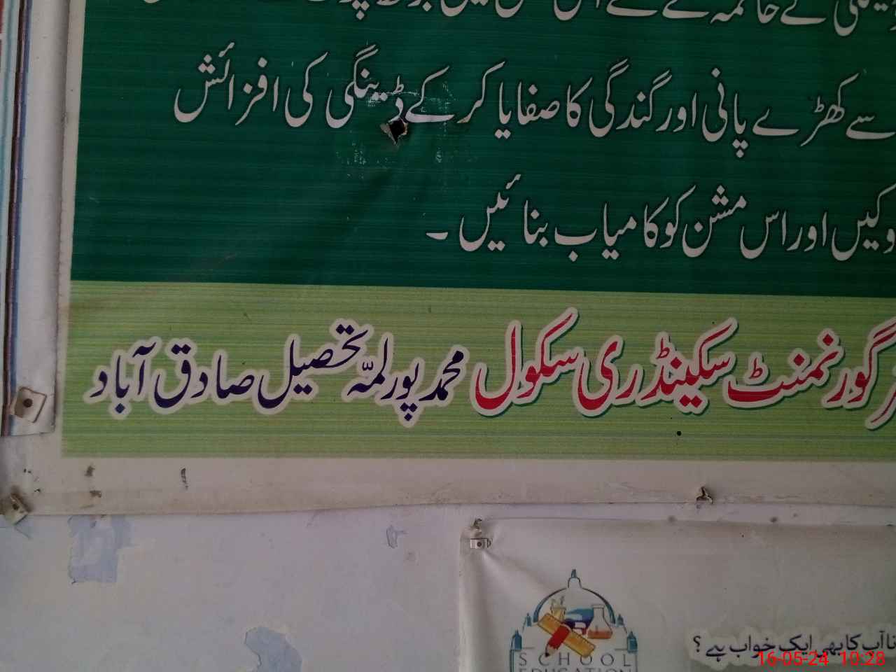 | District: RAHIMYAR KHAN | Tehsil: SADIQABAD | Markaz: SECONDARY-WING | Level: High | |