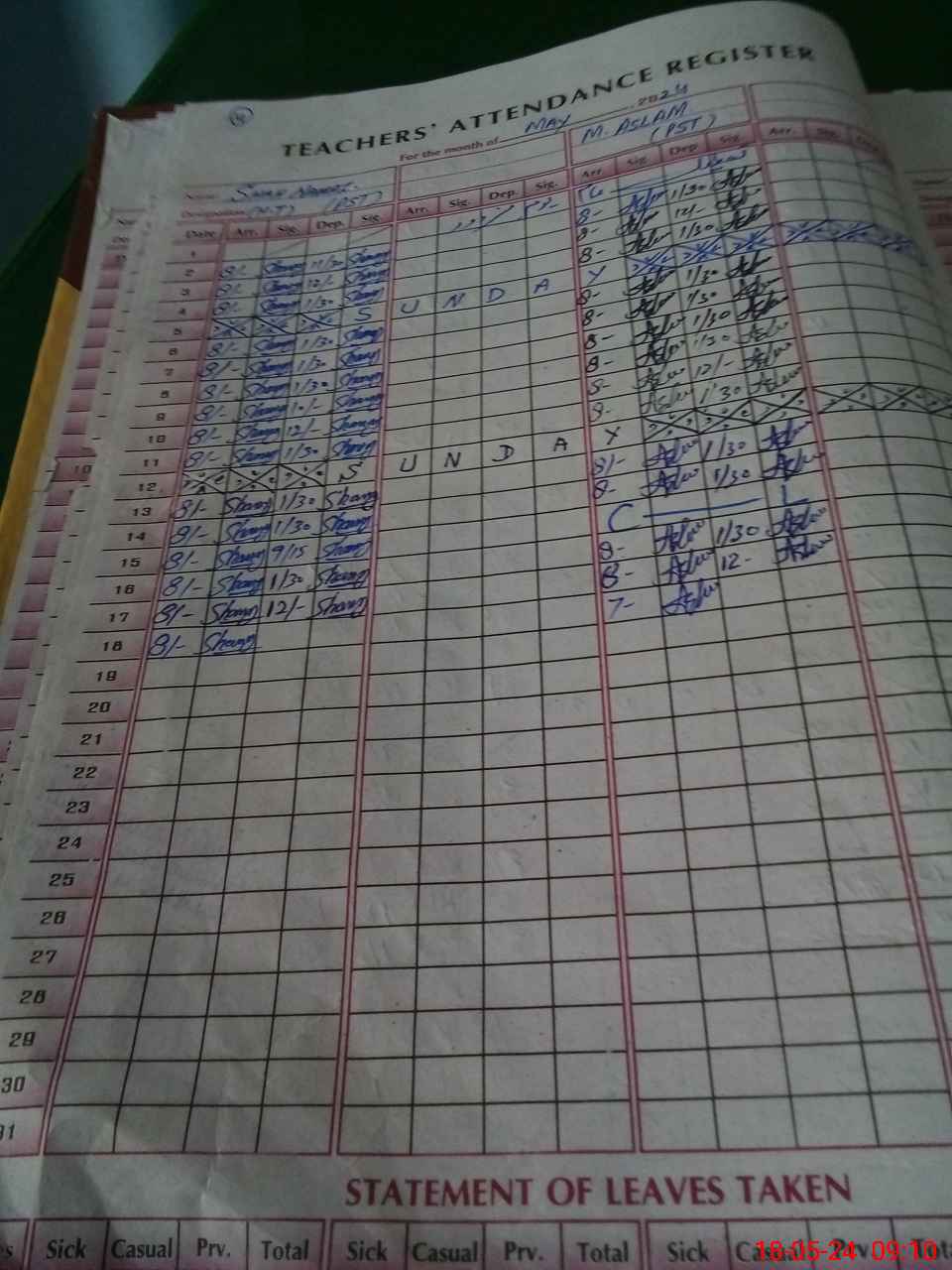 | Leave | Duty | Absent | Maternity | Medical | Ex- Pak |