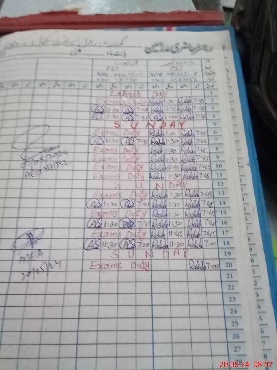 | 36**** | Mu**** Ay**** | 1 | 0 | 16 | 0 | 0 | 0 | 0 | 0 | 0 | 0 | Exam Duty | |