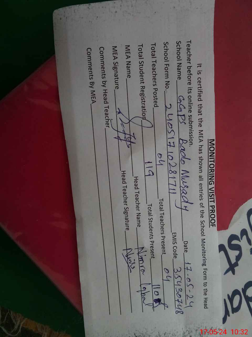 | EMIS Code: 35430748 | Name of School: GGPS BADO MURADAY | |||