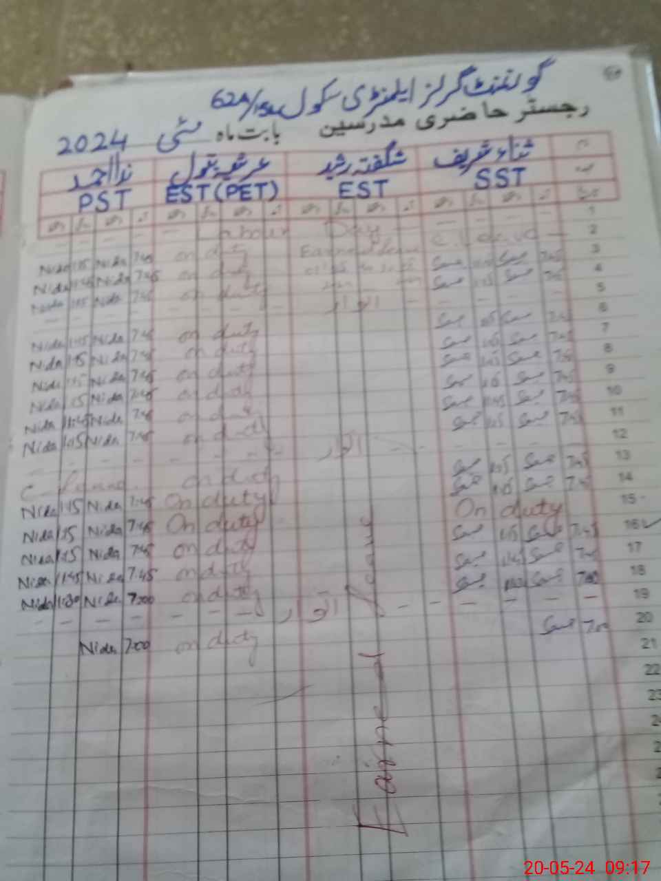 | 36**** | Ar**** Ba**** | Regular | 0 | 9 | 0 | 0 | 0 | 0 | 0 | 0 | 0 | Exam Duty | |