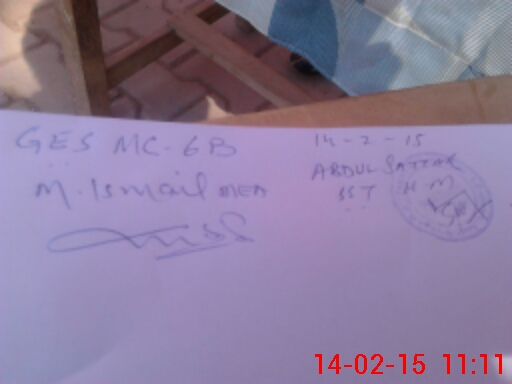 | Monitoring Date: 14-02-2015 | Start Time: 14-02-2015 10:50 AM | End Time: 14-02-2015 11:12 AM | Name of MEA: Z.**** M.Is**** | |
