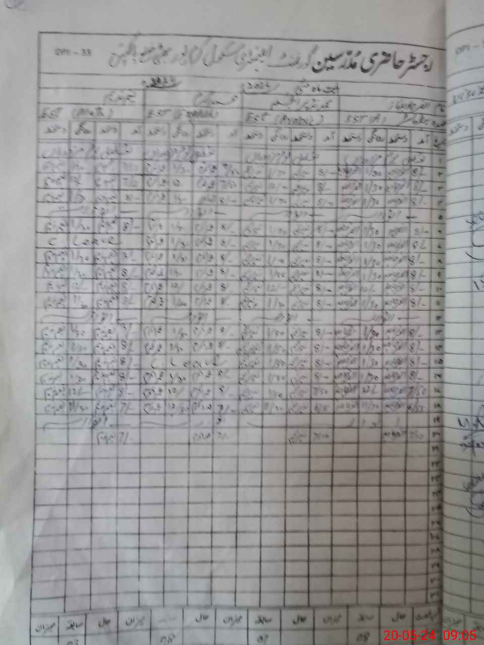 | CNIC | Full Name | Designation | R/C | Absence During Last Calender Month |
