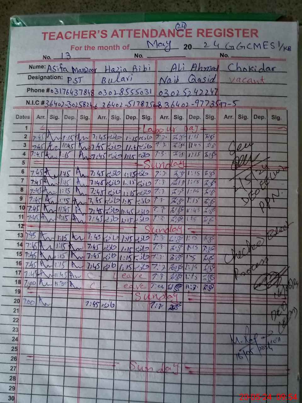 | Name: AL**** SH**** Designation: (School Headmaster's/Headmistress's) SST Phone/Cell Number: 03**** |