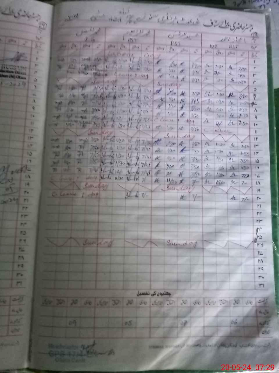 | CNIC | Full Name | Designation | R/C | Absence During Last Calender Month |