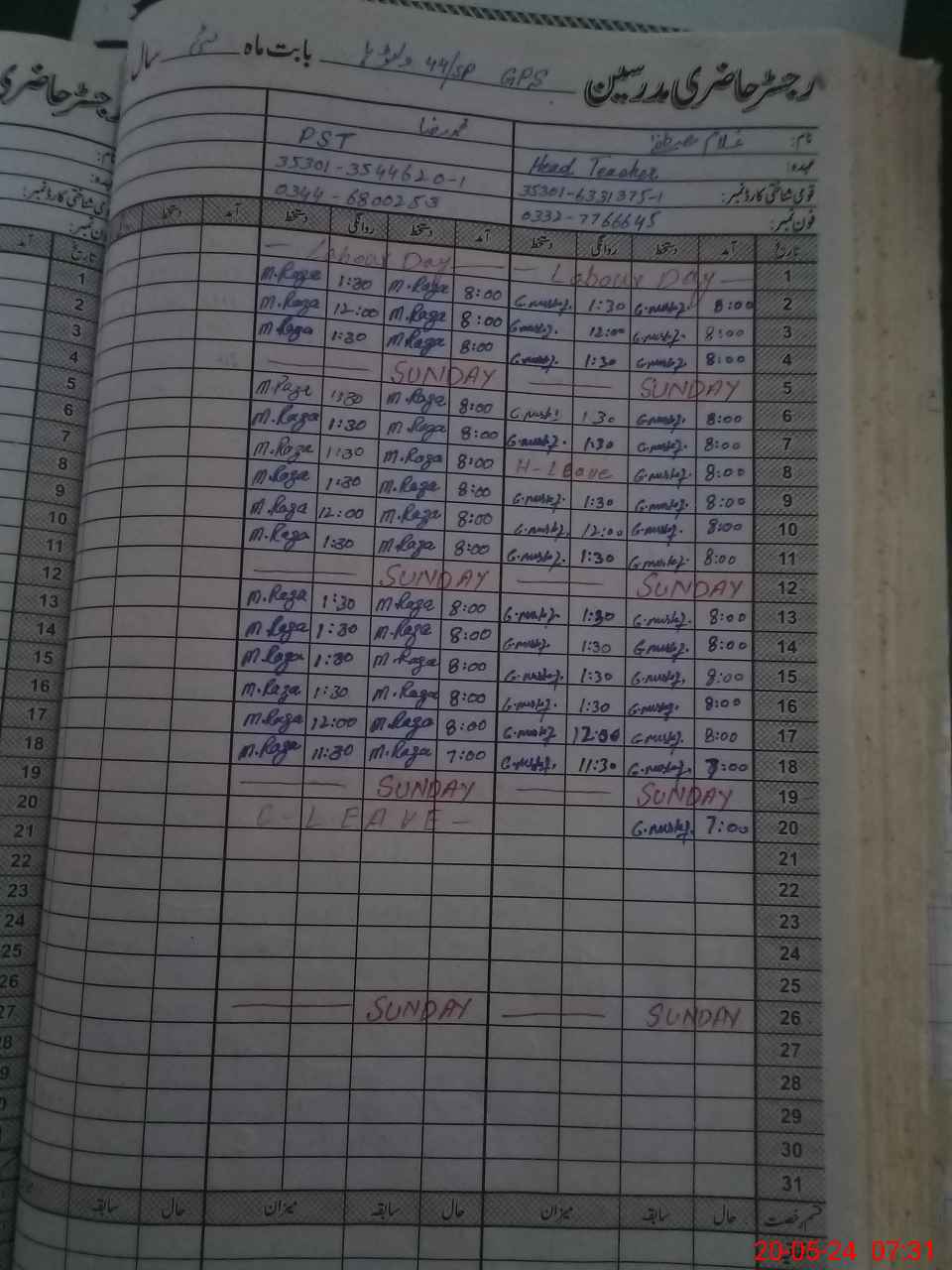 | Name: GH**** MU**** Designation: (School Headmaster's/Headmistress's) PST Phone/Cell Number: 03**** |