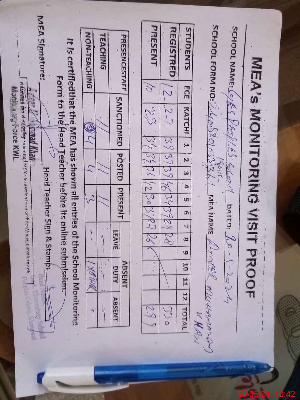 | EMIS Code: 36420148 | Name of School: GES PEOPLES COLONY, KHANEWAL | |||