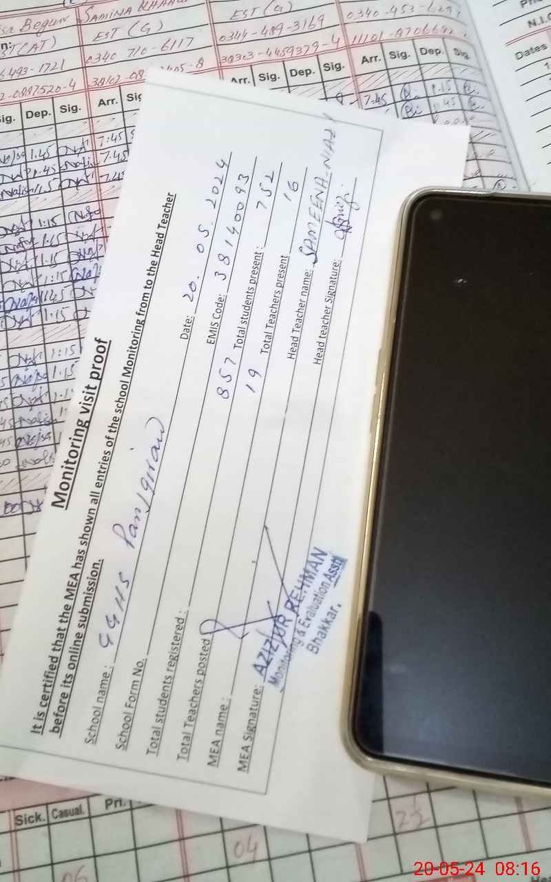 | Attendance Register | Head Teacher | MEA with School | Visit Proof |