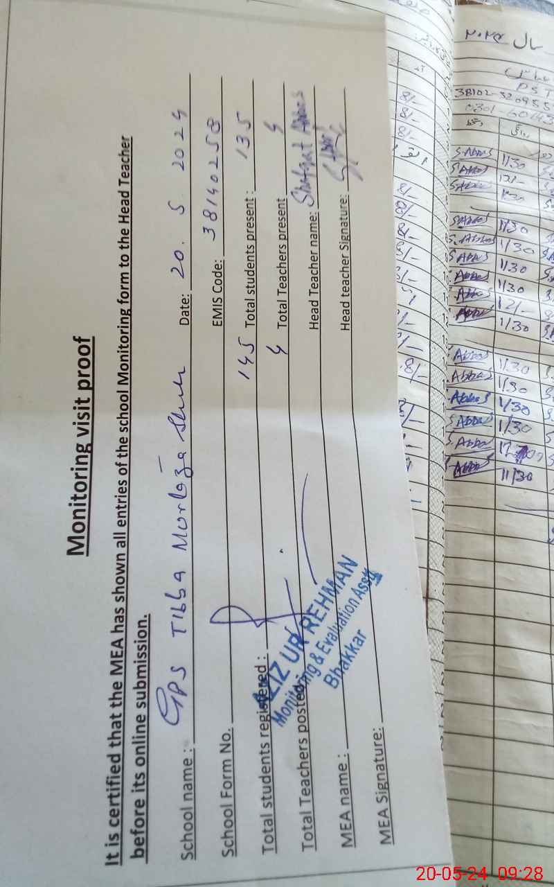 | EMIS Code: 38140258 | Name of School: GPS TIBBA MURTAZA SHAH | |||