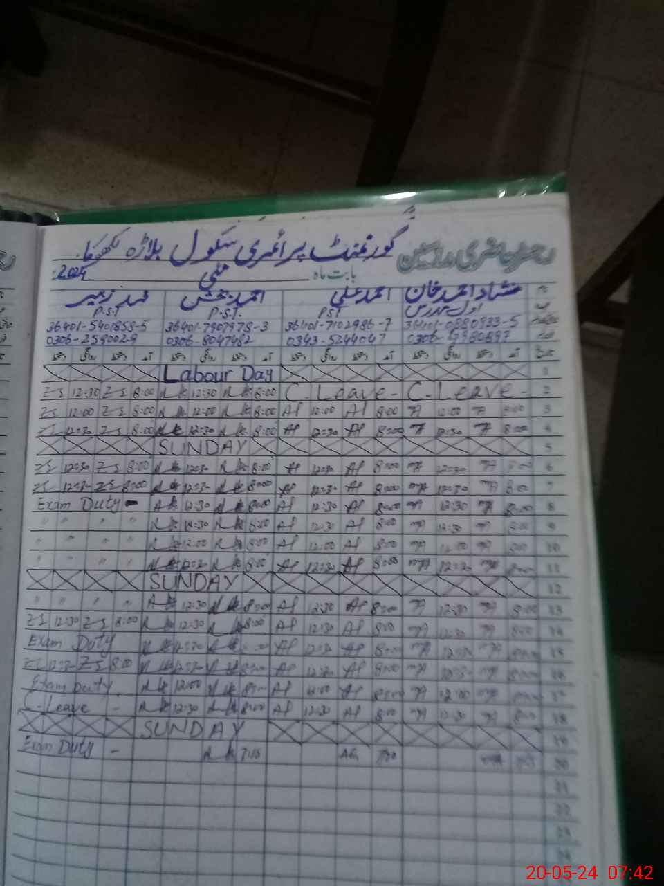 | 36**** | Mu**** Zu**** | 2 | 0 | 3 | 0 | 0 | 0 | 0 | 0 | 0 | 0 | Exam Duty | |
