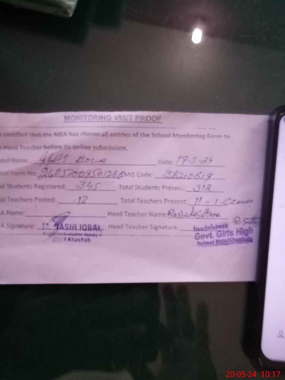 | Certified that this School was Inspected by the Undersigned MEA/DMO Today and the Information Stated Above is as Per Record. | |||||